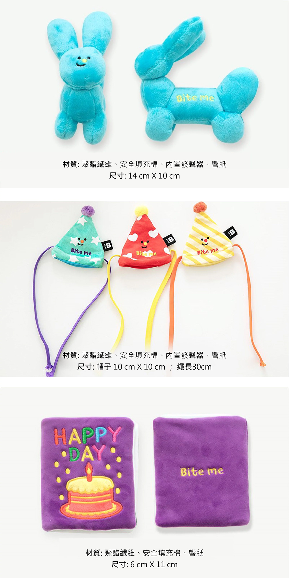 材質:聚酯纖維、安全填充棉、内置發聲器、響紙