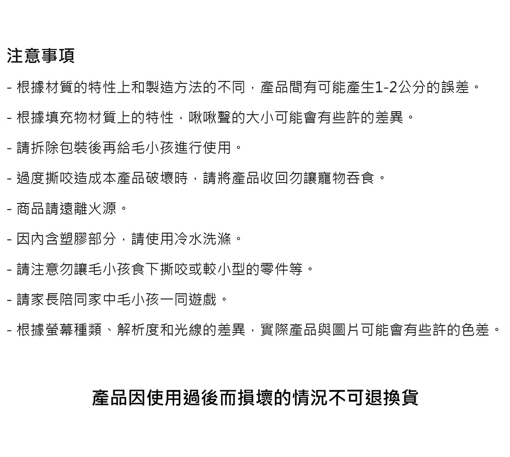 過度撕咬造成本產品破壞時,請將產品收回勿讓寵物吞食