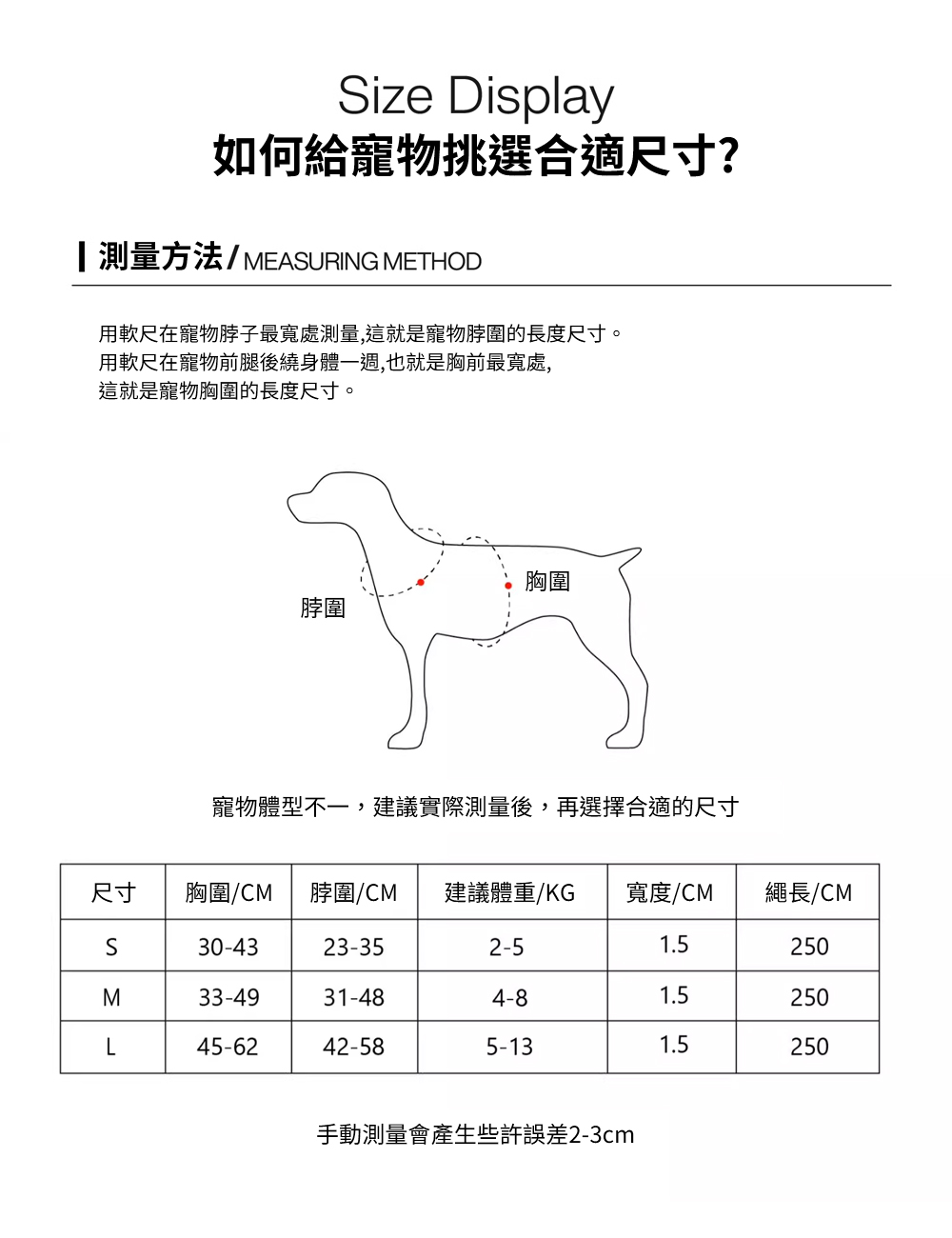 M:胸圍 33-49cm / 脖圍 31-48cm