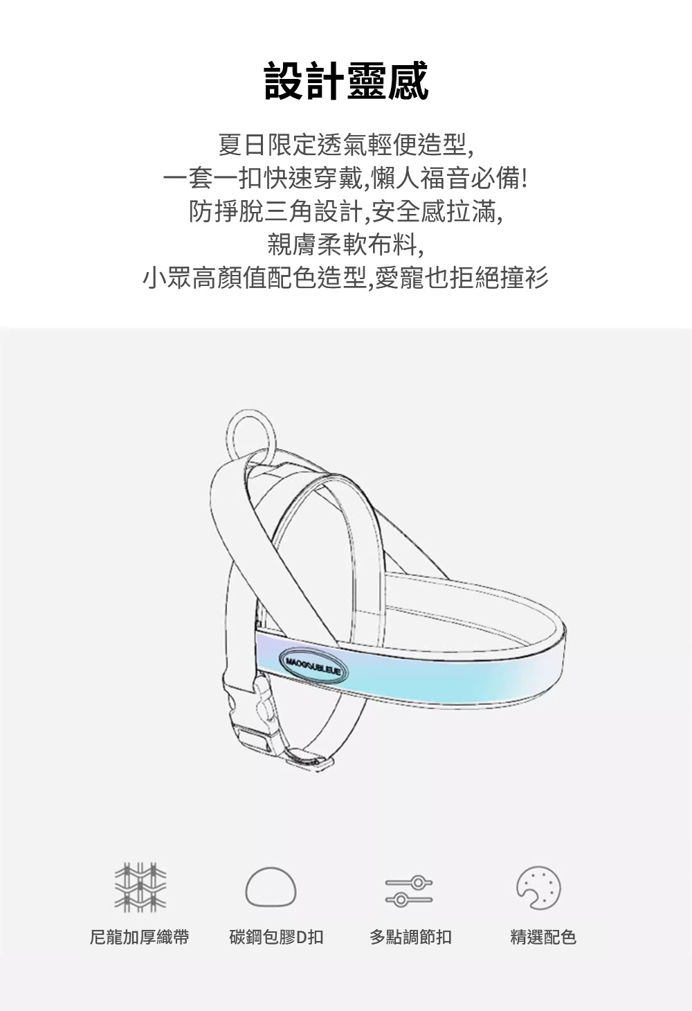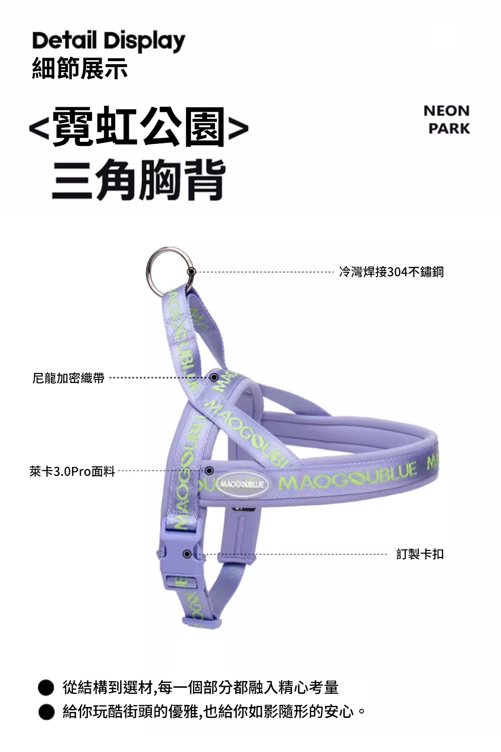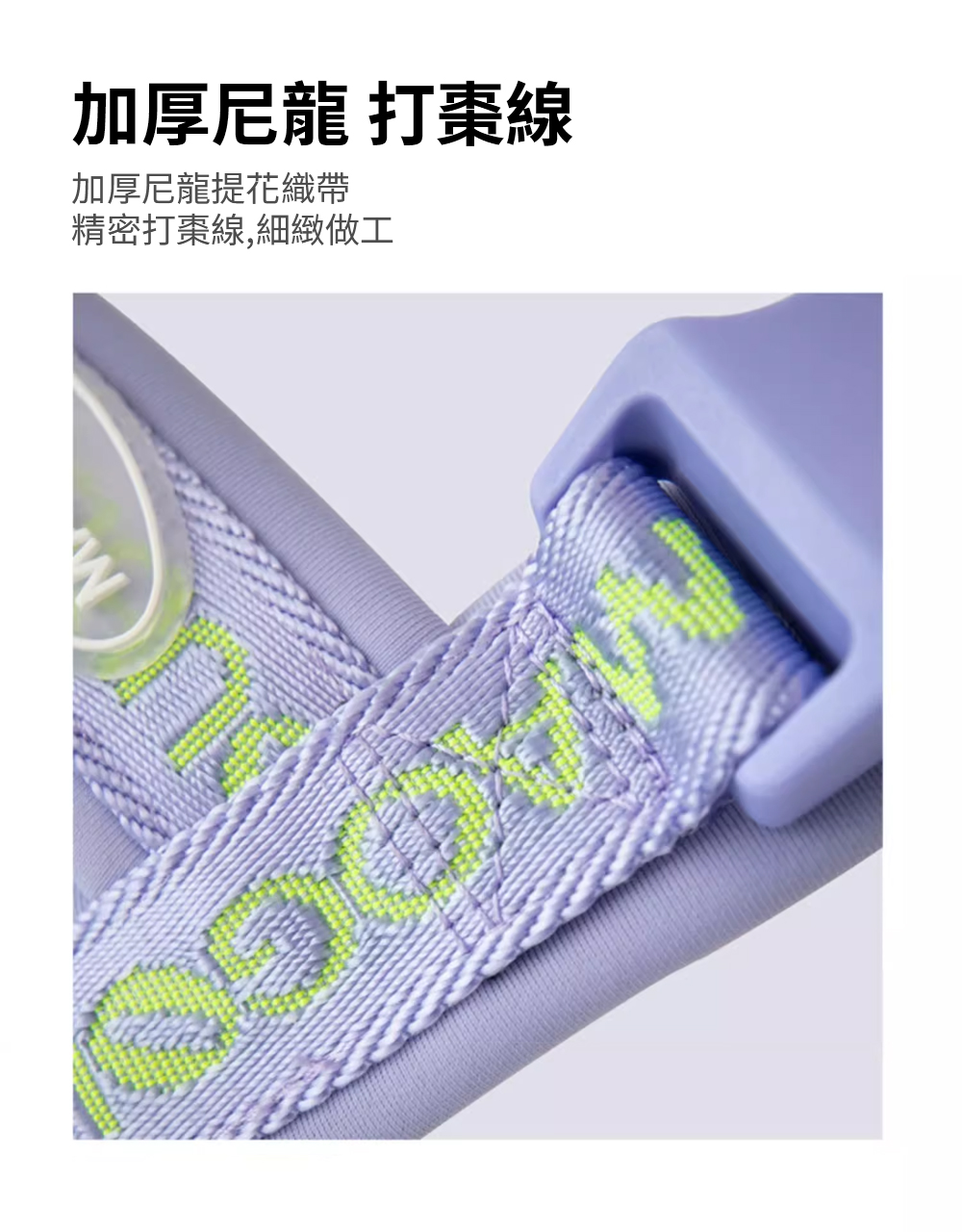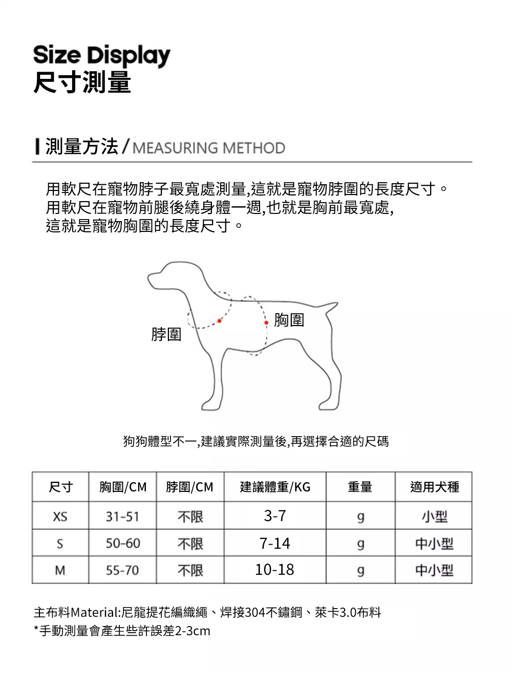 材質 : 尼龍提花編織繩、焊接304不鏽鋼、萊卡3.0布料
