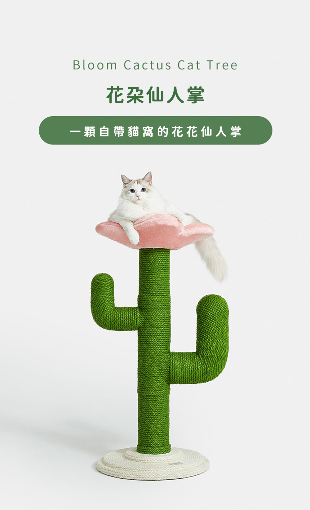 不需澆水也自動長出花朵貓窩的仙人掌