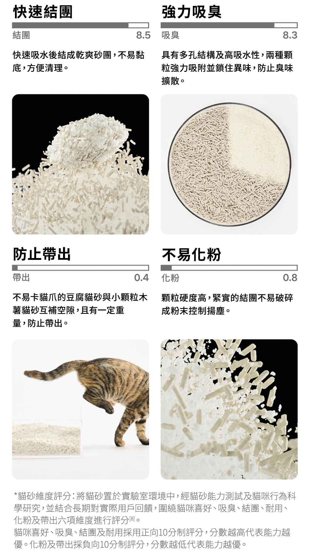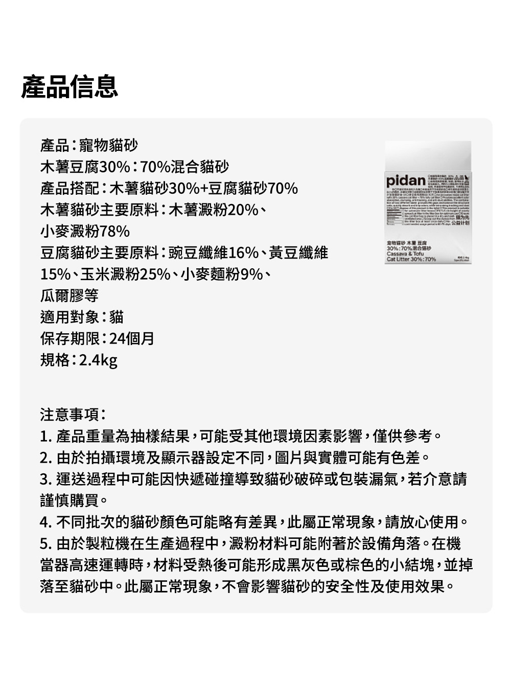 產品配比:30% 木薯貓砂 + 70% 豆腐貓砂